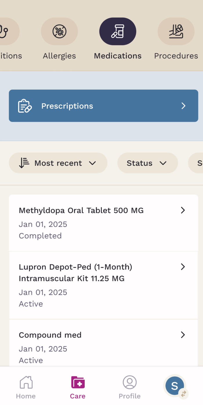Finding Completed Prescriptions from Your Clinicians