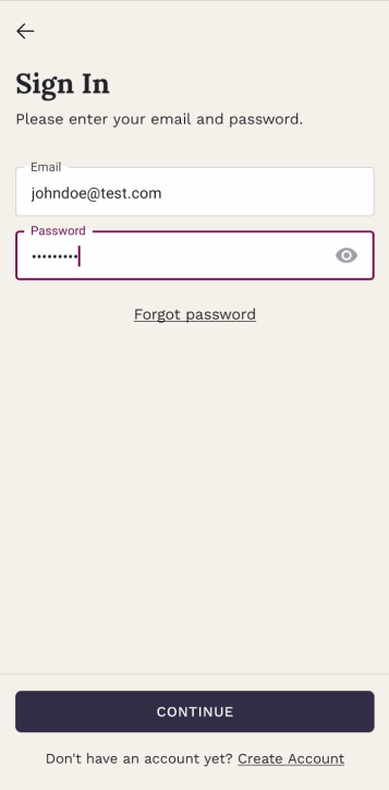 Type in your registered email address and password, then tap Continue.