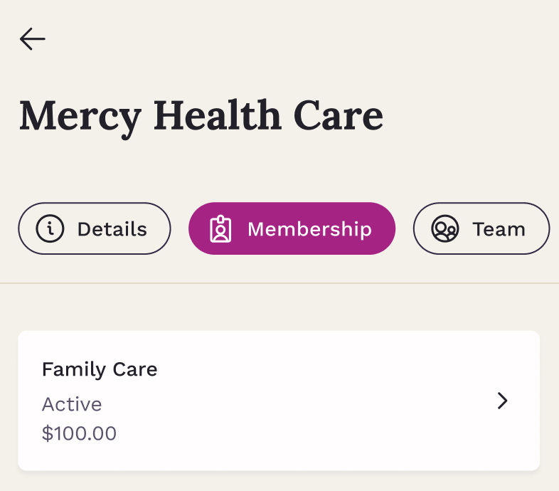 Under Healthcare Services, select Care Team, then tap Membership to see the memberships associated with the patient.