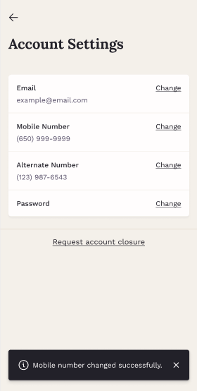 In Account Settings, find the Mobile number section. Tap Change next to your current number.